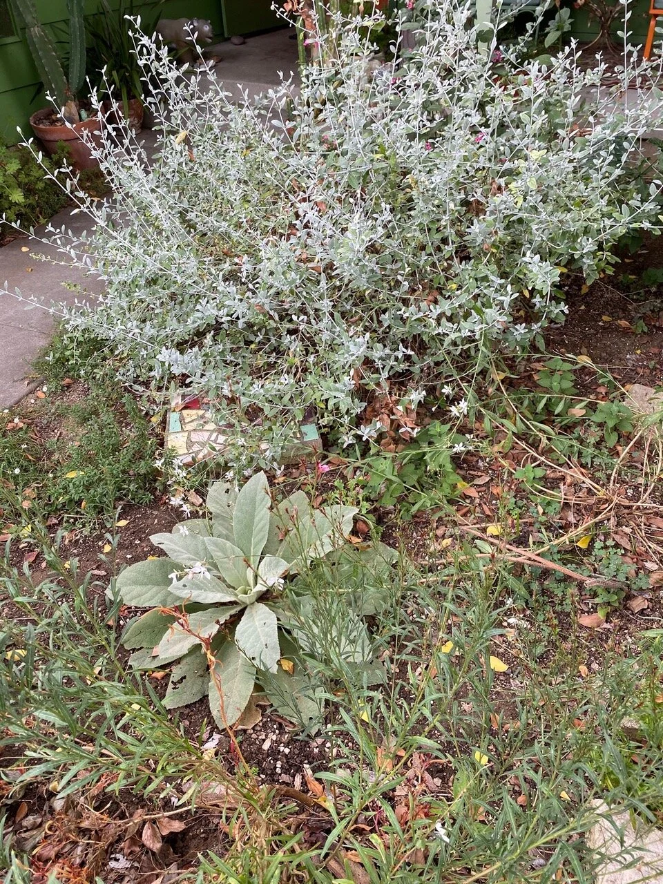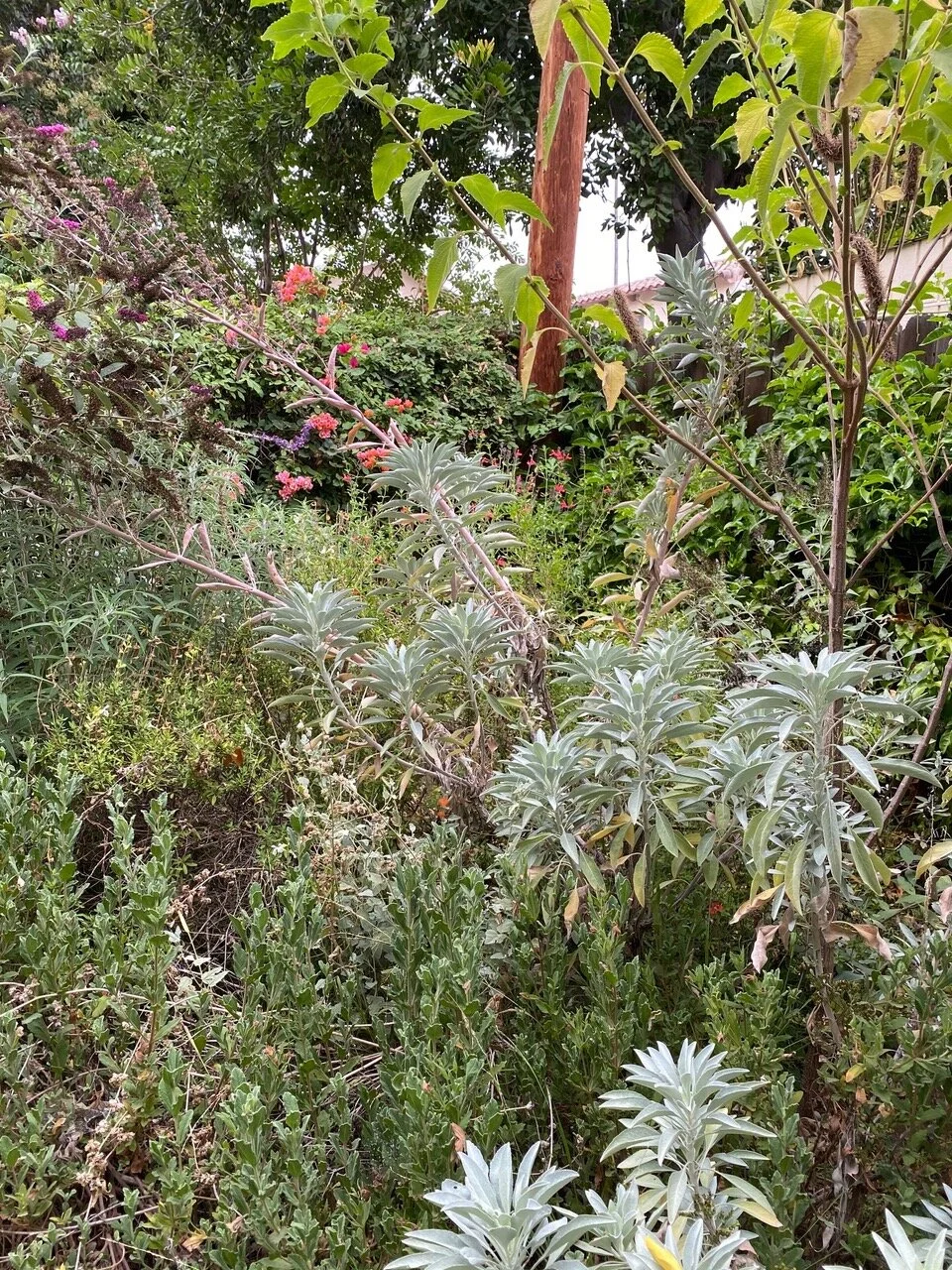 The most amazing event, was the nesting of a pair of wrentits. I've never seen them in our yard before! They built a nest deep in a staghorn fern, and we watched them bring nest material for many days, and then bring insects and little worms all day. Before we knew it, they too were gone. When we were sure about that, we cut into the plant and removed the little nest, so carefully built with soft strings, dryer lint and dog hair. There were two little eggs left. One of my bird guides said that wrentits produce 4-5 eggs, so I'm hoping 2-3 little chick survived. We never saw them unfortunately. Julie and I hope they return next spring. I had the nest framed with the eggs.