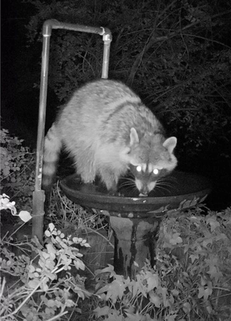 We put up a “trail camera” to take the photos. We were pleasantly surprised to see the bath had night time visitors, too.
